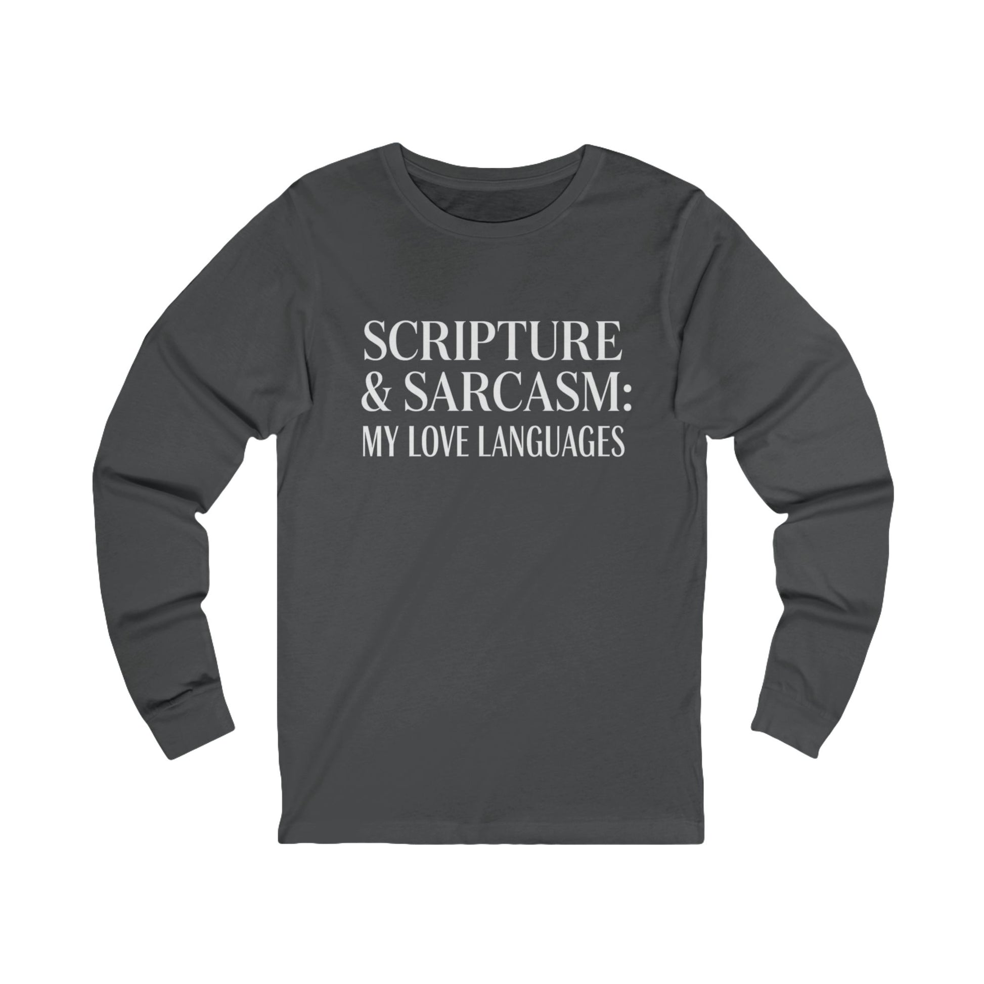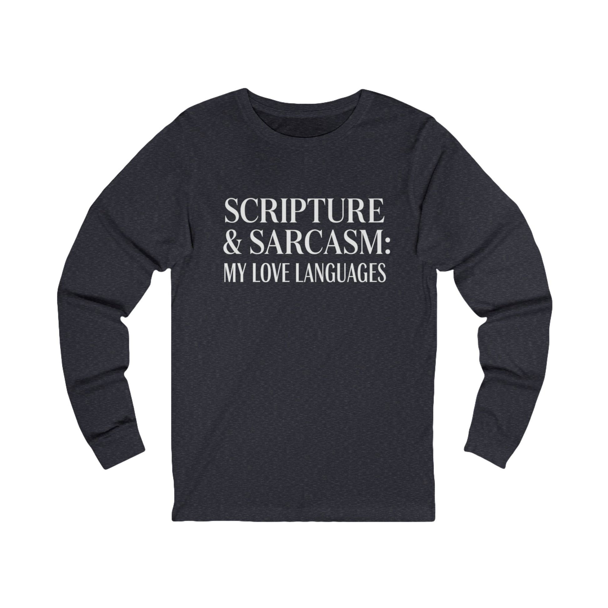 Scripture & Sarcasm Long Sleeve Tee, Funny Christian Shirt, Humor Apparel, Gift for Believers, Casual Everyday Wear, Sarcastic Tee